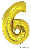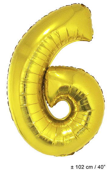 Celebrate a real birthday with foil balloon number "6" gold