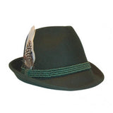 The green traditional hat comes with a small traditional feather.