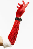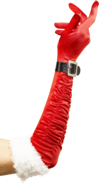 Lieferumfang sind lange Santa Handschuhe in rot mit weissen und schwarzen Elementen