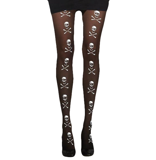 Schwarze Strumpfhose mit Totenschädel Aufdruck